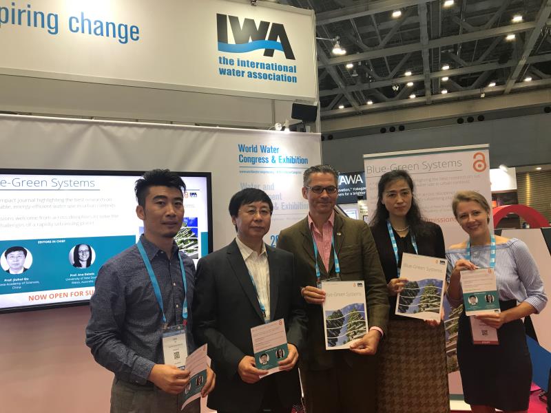 Prof. Jiuhui QU announced the launch of the latest IWA journal “Blue-Green Systems” at the IWA Pavilion during this congress